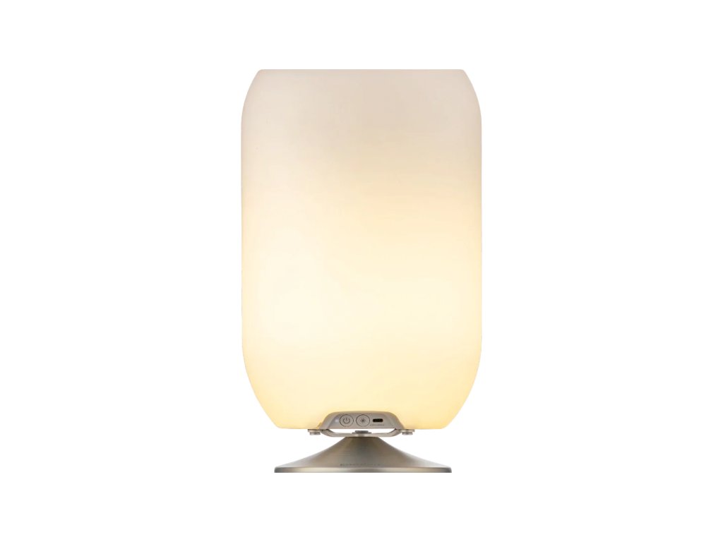 Kooduu Atmos Brass kombinuje luxus lampy, pohodlí držáku nápojů a potěšení z reproduktoru Bluetooth v jednom elegantním válcovém designu.